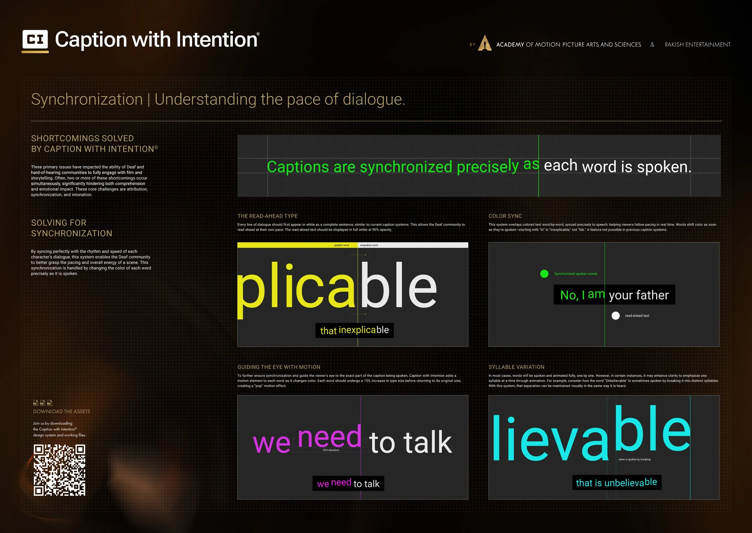 Caption with Intention© is the product of a collaboration between the Academy of Motion Picture Arts and Sciences, Rakish Entertainment, and the Chicago Hearing Society.
